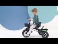 Das komfortable Dreirad kann auf dreierlei Weise gebraucht werden: Das Kind hält seine Füsse auf der Fussstütze, tritt in die Pedale beim Freilaufrad (unabhängig von der Person, die das Dreirad führt) oder radelt selbständig.