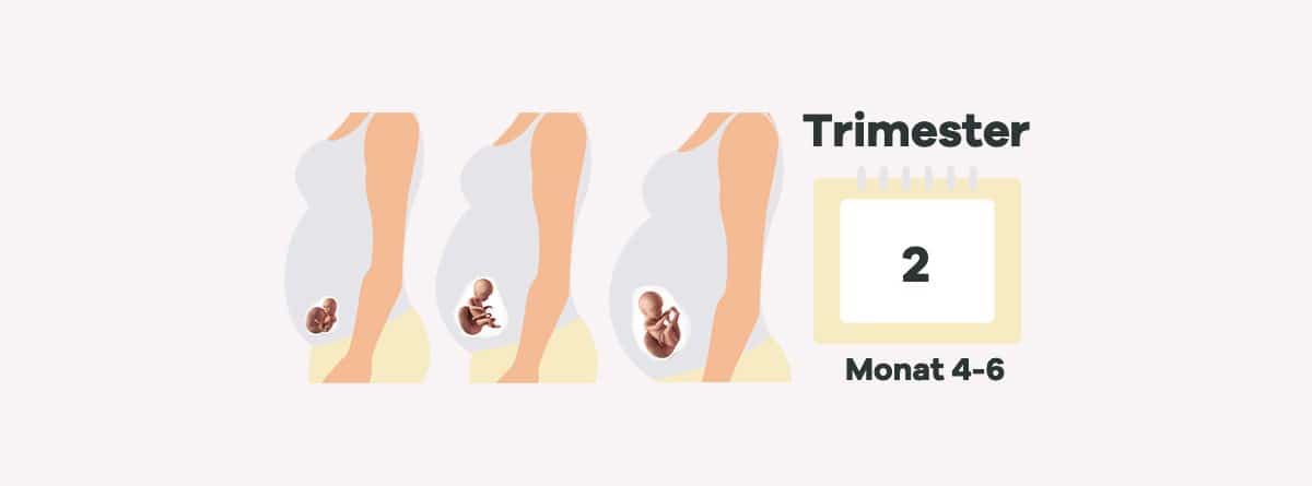 Das zweite Trimester erstreckt sich von der 13. bis zur 26. Schwangerschaftswoche. In diesem Stadium wächst das Baby schnell und beginnt, sich mehr zu bewegen. Die Mutter kann möglicherweise die ersten Bewegungen des Babys spüren, ein Phänomen, das als «Kindsbewegungen» bekannt ist. Die Organe des Babys entwickeln sich weiter und es beginnt, Geräusche zu hören und auf Licht zu reagieren. Bis zum Ende des zweiten Trimesters erreicht das Baby eine Größe von etwa 35 cm. Du willst mehr dazu lesen, dann gehts hier zum Thema zweites Trimester.